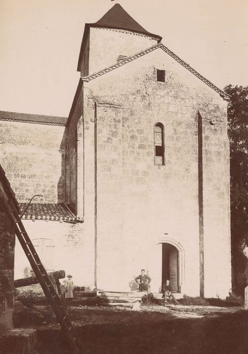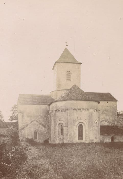 Eglise du 12e siècle en forme de croix grecque. La nef ainsi que les bras du transept, de même dimension et sur plan carré, sont voûtés en berceau. Une coupole voûte la travée centrale sur laquelle s'élève un clocher postérieur à l'église. L'abside voûtée en cul de four est décorée d'arcatures et éclairée par trois fenêtres. Les deux absidioles ont disparu.