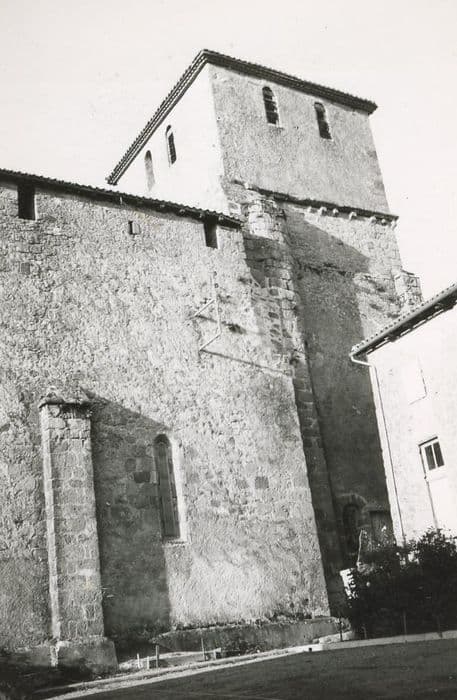 L'église, édifiée sans doute au 12e siècle, a subi quelques modifications pendant les Guerres de Cent ans. Les murs latéraux ont été rehaussés pour édifier un chemin de ronde. Autre modification plus tardive, la partie supérieure du clocher a été totalement remontée. Le plan n'a pas de transept et se termine par un chevet arrondi sans absidiole. A l'image d'une série d'églises limousines, la façade comporte un avant-corps en saillie, terminé en mitre. De gros tores ornent les deux voussures du portail qui retombent sur des chapiteaux sculptés (lions affrontés ; chimères ; Samson et le lion...). Au-dessus, dans une grande arcature, un Christ en majesté est représenté dans une mandorle, entouré de deux anges thuriféraires. A ses pieds se déroule une frise de saints, interrompue par trois petites baies. A l'intérieur, l'entrée est dominée par une tribune réalisée au 19e siècle. La nef est voûtée en berceau brisé. D'allure octogonale, la coupole sous clocher repose, au nord, sur des trompes et, au sud, sur des pendentifs. Le choeur se résume dans le cul de four.