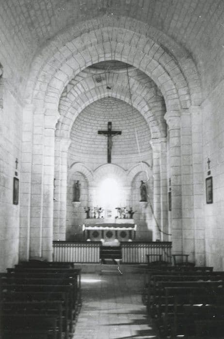L'église faisait partie du diocèse de Saintes. Elle a été mutilée au cours de la guerre de Cent ans et saccagée par les Calvinistes. Elle fut restaurée et reçut de gros contreforts au 15e siècle. L'édifice est orienté, à nef unique sans transept, surmonté d'un clocher carré à toit presque plat, dont chaque face est percée de deux baies. L'abside est en cul de four extérieurement et décorée d'arcatures presque aveugles intérieurement. Les arcs extérieurs, surmontés d'une frise, retombent sur des pilastres. Au faux carré, sous le clocher, se trouve une coupole sur pendentifs encadrée d'arcs doubleaux.