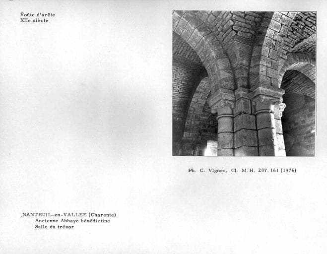 Salle du Trésor : 12e siècle ; Grands Greniers : 13e siècle, 14e siècle. L'abbaye eut à souffrir des guerres de Cent ans et de Religion. Ses derniers restes sont surtout connus par le monument presque unique appelé Trésor. Un très vaste bâtiment est percé de fenêtres géminées, en arc brisé. Quelques vestiges de peintures murales sont visibles à l'intérieur où deux salles superposées sont couvertes de voûtes d'arêtes romanes. Aucun escalier ne conduit à la salle supérieure. Son accès n'est possible que par une porte située à plusieurs mètres au-dessus du sol. A l'extérieur, les murs sont ornés de hautes arcatures avec pilastres rectangulaires et colonnes à demi engagées.