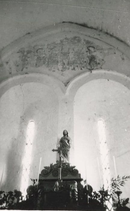 Une église primitive est bâtie vers la fin du 11e siècle ou au début du 12e. L'abside d'origine est remplacée au 12e siècle par le choeur actuel voûté en berceau brisé. Le mur sud de la nef et la façade occidentale pourraient dater du 17e siècle, suite aux destructions des guerres de Religion. La voûte de la nef, en briques, date de 1844. Présence de peintures murales dans le choeur, et de traces dans le reste de l'église.