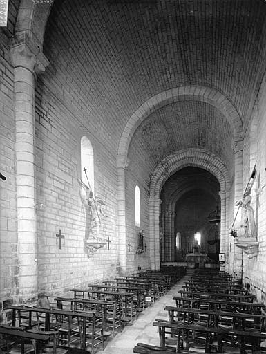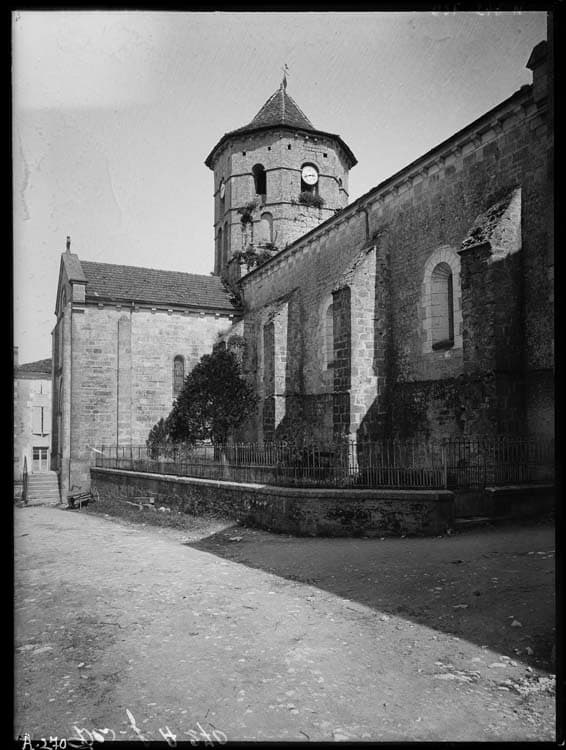 Eglise d'époque romane avec transept formant croix latine et absidiole voûtée sur chaque partie du transept. Le clocher octogonal, voûté en coupole, est placé à la croisée du transept et de la nef. Le transept n'avait autrefois qu'un plancher qui a fait place à une voûte en briques lors des restaurations du 19e siècle. La porte d'entrée, du 15e siècle, a subi d'importantes modifications.