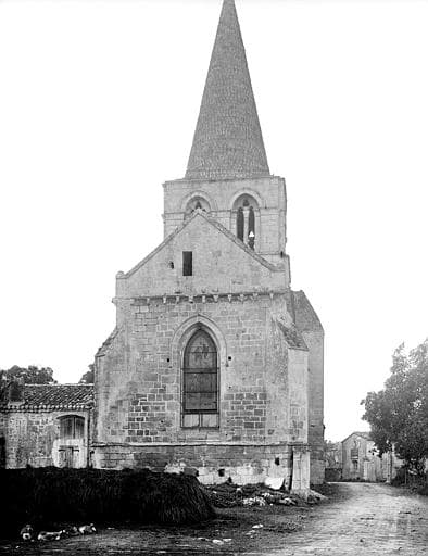 L'église primitive devait se composer de deux travées sans collatéraux et d'un choeur. Elle devait être couverte d'une simple charpente apparente. Modifications au 12e siècle. A cet édifice a été ajoutée une travée portant clocher et couverte, sous celui-ci, d'une coupole octogonale sur trompe. Terminant l'église à l'est, le choeur rectangulaire est couvert d'une voûte angevine du 13e siècle. A la suite du mur de la nef vient une tourelle d'escalier montant au clocher.