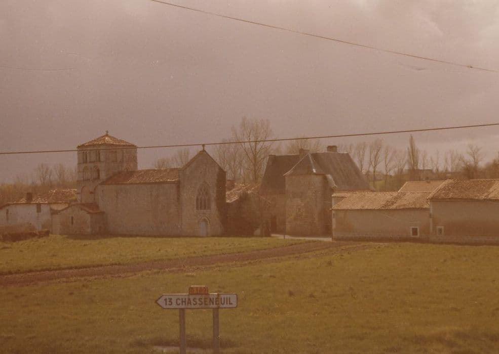 La première mention de l'édiifice date de 1260. Jadis siège d'une cure rattachée au chapitre cathédral d'Angoulême en 1409, il fut en partie ruiné par les Protestants en 1562 et relevé à la fin du 16e siècle. D'autres travaux eurent lieu en 1638-1651, 1759 et vers 1870. La nef, couverte d'un lambris en 1850, est précédée d'une façade de la fin du 16e siècle, percée d'une porte au cintre brisé, sous une large fenêtre au remplage de style flamboyant datant de 1912. Elle se prolonge vers l'est par un carré sous berceau, plus étroit, limité à ses extrémités par deux grands arcs sur colonne. L'abside semi-circulaire est surmontée d'un cul de four. Le clocher sur le carré possède une base renforcée au nord et au sud d'une double arcade aveugle sur pilastres. L'abside et le clocher datent du 12e siècle.