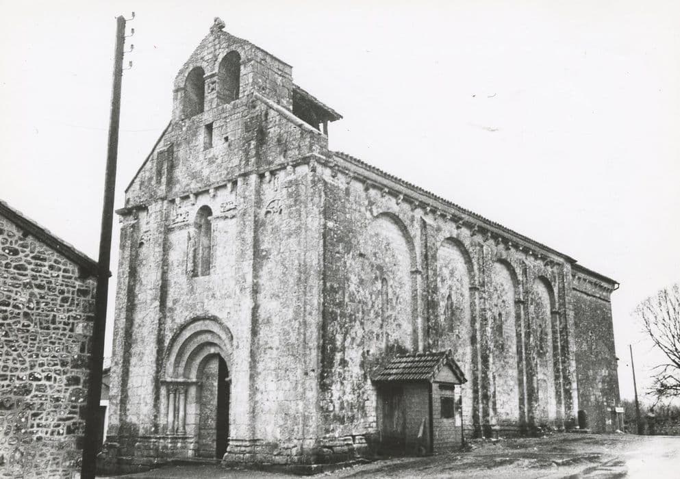L'église se compose d'une nef et d'un faux carré couverts d'un lambris en place de leurs berceaux primitifs, ainsi que d'une abside sous cul de four. Les murs de la nef et du carré ont été en partie remontés. Chapiteaux ornés de feuillages et d'animaux. La façade est surmontée d'un pignon portant un clocher-arcade à deux ouvertures. Deux statues-colonnes accompagnent la baie médiane. Au-dessus du bandeau qui sert d'imposte à la fenêtre, deux animaux ailés et couchés, représentant un lion et un taureau. La division tripartite est accusée par des contreforts d'angles et les pilastres encadrant le portail.