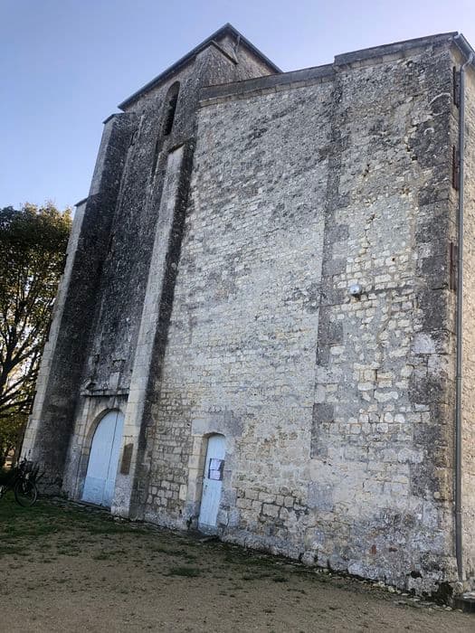 Cette église est un témoignage de l'évolution du mode de construction des édifices religieux au cours du temps. Des traces de l'église romane sont encore lisibles, mais l'édifice actuel est surtout dû à une longue période de reconstruction menée de la fin du 16e siècle jusqu'à la fin du 17e. Pour cette reconstruction, un parti gothique a été retenu. L'église était autrefois rattachée au diocèse de Saintes. Sa fondation semble remonter au Moyen Age. L'édifice fut mutilé par les guerres de Cent ans et de Religion. Au 17e siècle, l'église est écroulée et il ne reste que le clocher et la travée de choeur. Un nouvel édifice est alors bâti dans le prolongement du choeur et une nouvelle façade construite, qui ferme l'ancien choeur roman vers l'ouest. Un socle de croix hosannière, surmonté d'une croix plus récente, marque, du côté sud de la place, l'emplacement de l'ancien cimetière.