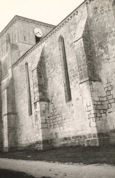 Eglise d'origine romane, donnée en 1107 à l'abbaye d'Ebreuil qui l'unit à son prieuré Saint-Léger-de-Cognac. Détruite pendant les guerres de Religion, elle fut reconstruite au 17e siècle. D'importants travaux eurent lieu au 19e siècle (charpente, corniche, voûtes, portail...). L'édifice forme un long rectangle de contreforts. Ce vaisseau se rétrécit à l'ouest, à l'emplacement du clocher-porche. Il s'agrandit au nord d'une chapelle rectangulaire à hauteur de la troisième travée de la nef. Une sacristie est accolée au chevet plat. Sur un portail en cintre brisé couronné d'un gâble et d'un oculus, l'étage du clocher est orné de colonnettes adossées entre un bandeau et une corniche sur modillons. Le clocher-porche est voûté de croisées d'ogives à quatre quartiers. La nef et le choeur datent du 19e siècle.