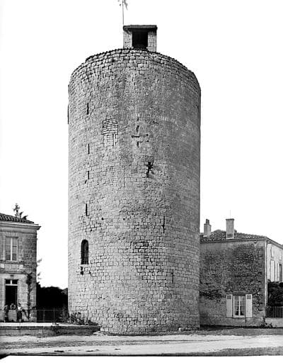 De l'ancien château des seigneurs d'Aulnay ne subsiste qu'une tour, dite tour du donjon. Le château existait encore au début du 17e siècle, tombant en ruine peu à peu. A la Révolution, il sert de carrière pour les constructions. Vers 1820, une seconde tour existait encore, dite tour Saint-Louis. Ce château-fort avait été bâti par les vicomtes d'Aulnay. Pendant la guerre de Cent ans, il a été occupé par les Anglais, assiégé et pris par Dugesclin. Pendant les guerres de Religion, il a été disputé par les Protestants et les Catholiques. Louis XIII est venu l'occuper. Le donjon subsistant comprend un rez-de-chaussée qui a servi de prison communale, un premier et second étage voûtés en coupole, un troisième coupé par la charpente et un quatrième étage dont il ne reste que l'amorce du chemin de ronde.