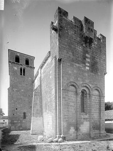 Petit édifice du 12e siècle, offrant une disposition intéressante d'abside rectangulaire ornée de hautes arcatures et surmontée postérieurement d'ouvrages de fortification.