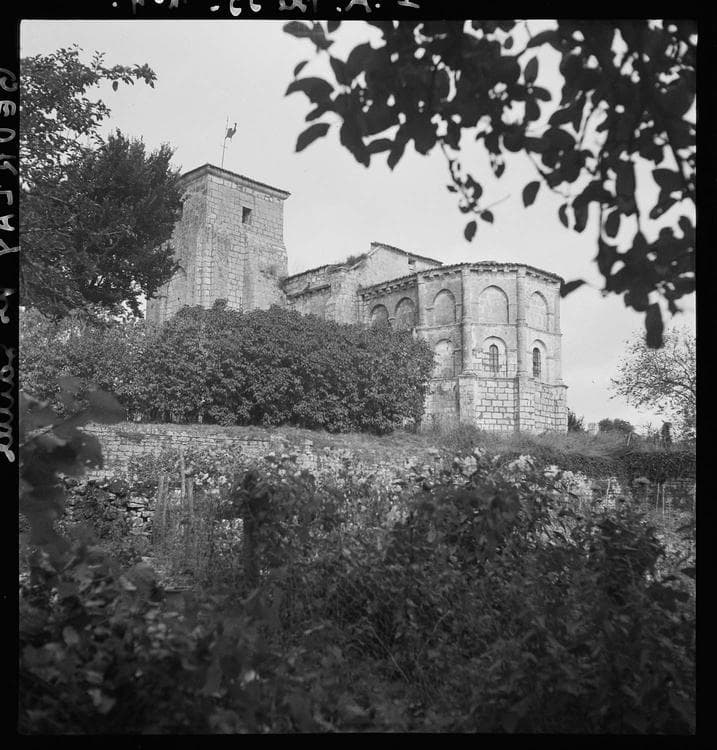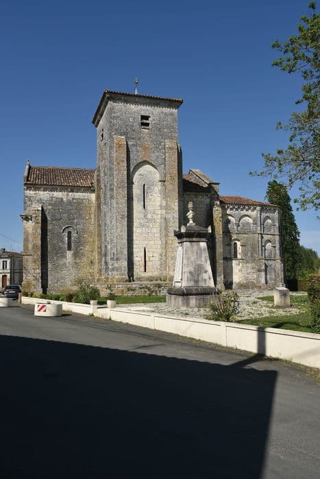 L'église date du 12e siècle mais le portail de la façade occidentale a été en partie restauré. Le clocher date du 14e siècle. L'édifice se compose d'une nef sans bas-côtés, suivie d'un choeur en berceau brisé, terminé par une abside en cul de four brisé. Cette dernière comprend trois étages et sept aires séparées par des colonnes montant du sol jusqu'à la corniche à modillons qui supporte le toit. Les deux étages supérieurs sont garnis de fenêtres et de baies aveugles en plein cintre. Un arc à triple ressaut, porté par des pilastres saillants, sépare le choeur de la nef. Un autre arc à peu près semblable se dresse entre l'abside et le choeur qui, ainsi délimité et renforcé, a vraisemblablement porté un clocher disparu. De cette construction première subsistent les quatre piliers de soutènement et les chapiteaux historiés. Le clocher, massif et carré, s'élève à droite de la nef. Sur chacune de ses faces entre les pilastres et ses angles, se tend un arc en tiers-point.