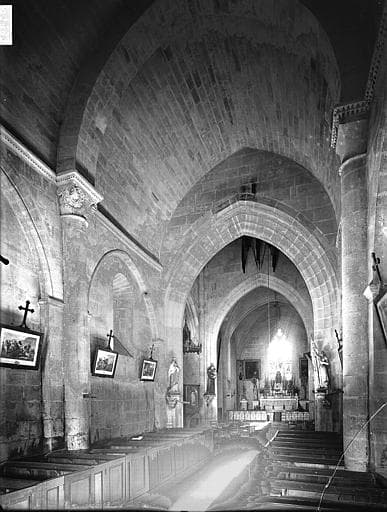 Eglise romane du 12e siècle, avec deux chapelles latérales ajoutées au 14e siècle. A la croisée, du transept, coupole sur pendentifs.