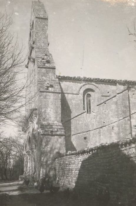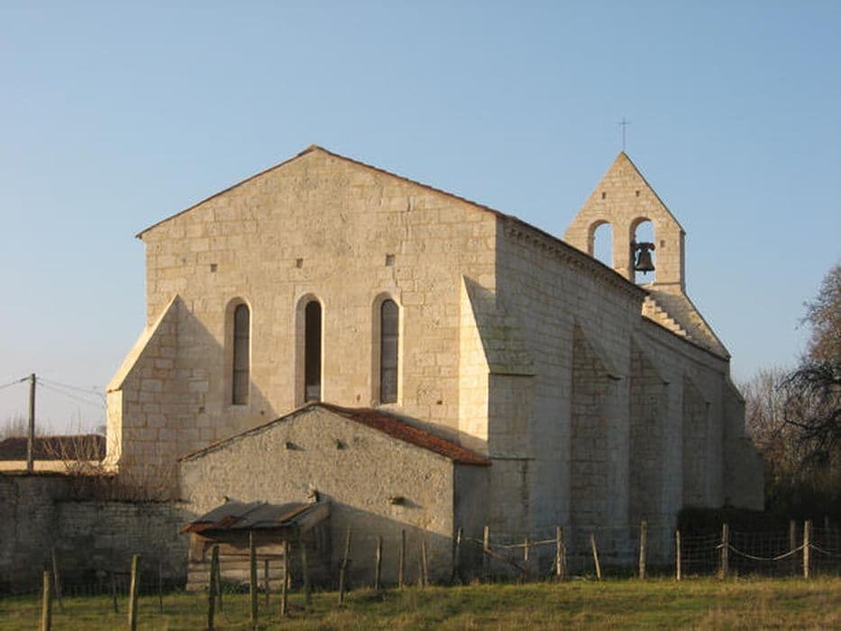 L'église est de fondation très ancienne, mais l'édifice actuel remonte au 12e siècle. Ce dernier a souffet des guerres de Cent ans et de Religion. Plan rectangulaire avec abside terminée par un mur droit. Les voûtes détruites ont été remplacées par un plafond cintré en plâtre. Au portail d'entrée, les deux voussures sont ornées de rinceaux, griffons et d'une tête plate. Les chapiteaux des colonnes partant des voussures, bien qu'abîmés, conservent un décor sculpté. Le mur nord a été refait mais conserve, à son sommet, quelques pierres romanes ornées. Le mur sud est percé d'une fenêtre romane sur la partie la plus proche de la façade. Il semble ensuite appartenir à une autre période de construction. De gros contreforts du 15e ou du 16e siècle appuient les murs.