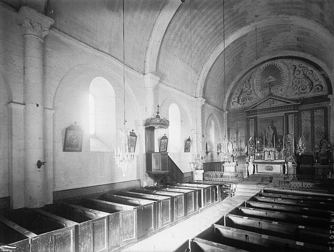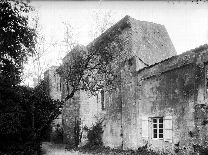 La nef de l'ancienne église est encore debout et comprend quatre travées séparées entre elles par des colonnes et pilastres supportant la retombée des arceaux. Les voûtes ont été rétablies en plâtre. La façade ouest a conservé son portail à quatre rangs d'archivoltes. Le premier étage de cette façade est occupé par une galerie d'arcatures à chapiteaux, tailloirs, claveaux et couvre-joints sculptés. Un second étage a été élevé à une époque postérieure à la construction de l'édifice. Il est décoré de trois arcatures, à fenêtre centrale, avec chapiteaux sculptés. Les angles de cette façade principale sont formés de cinq colonnes sculptées reposant sur trois colonnes à la base.