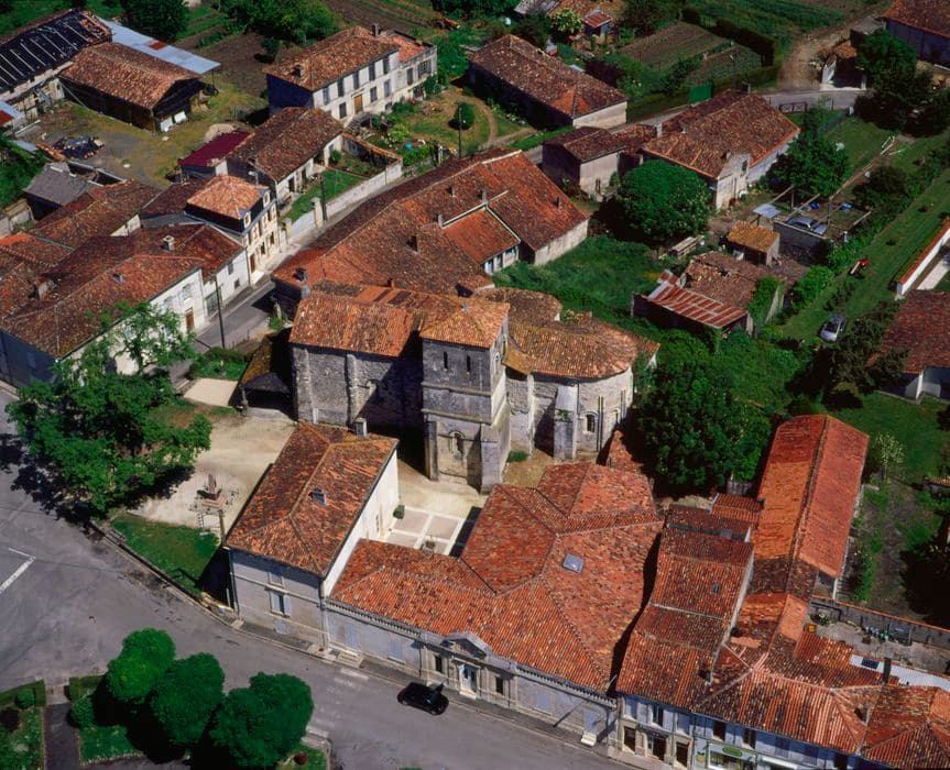 Edifice de la fin du 12e siècle, modifié au cours des âges. Le plan a conservé son unité. Il comporte une nef de trois travées, un transept avec chapelles latérales et absidioles sur l'une desquelles est élevé le clocher, un choeur et un sanctuaire absidal. Le dérasement de la nef et du bras gauche du transept date de l'époque où les voûtes en berceau furent démolies, ainsi qu'une coupole. Trois contreforts ont été ajoutés au 15e siècle. Le portail comporte quatre voussures en arc brisé moulurées, retombant de chaque côté sur autant de colonnettes avec chapiteaux à feuillages. Les tailloirs sont également revêtus d'ornements sculptés. Le porche moderne est en partie supporté par des corbeaux anciens. Le clocher est complet. Il possède un étage roman à arcatures retombant alternativement sur colonnettes et sur pilastres. L'étage supérieur paraît être postérieur.