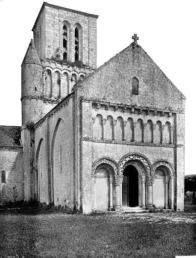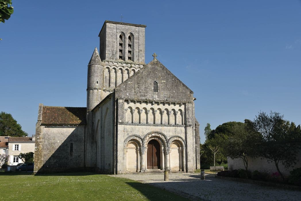 En 1105, l'évêque de Saintes décida de faire construire l'église. La façade s'ouvre par une porte centrale encadrée de deux fausses portes. L'arcade en plein cintre de chacune est formée par deux voussures portées par deux colonnes à chapiteau sculpté. Chaque archivolte est formée d'entrelacs mêlés de figures d'hommes et d'animaux. Le clocher présente une colonnade au premier étage. L'étage supérieur a été refait au 15e siècle. L'accès se fait par une tour terminée en pyramide. La nef, voûtée en berceau, se termine par une abside en cul de four, éclairée par trois fenêtres symboliques refaites au 12e siècle. Les fenêtres de la nef ont été refaites au 13e siècle. Le transept sud présente une abside voûtée en cul de four et orientée comme l'abside principale.