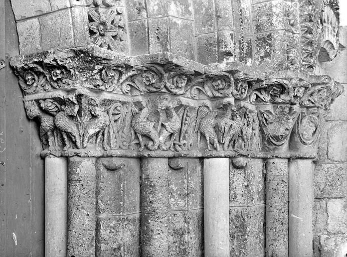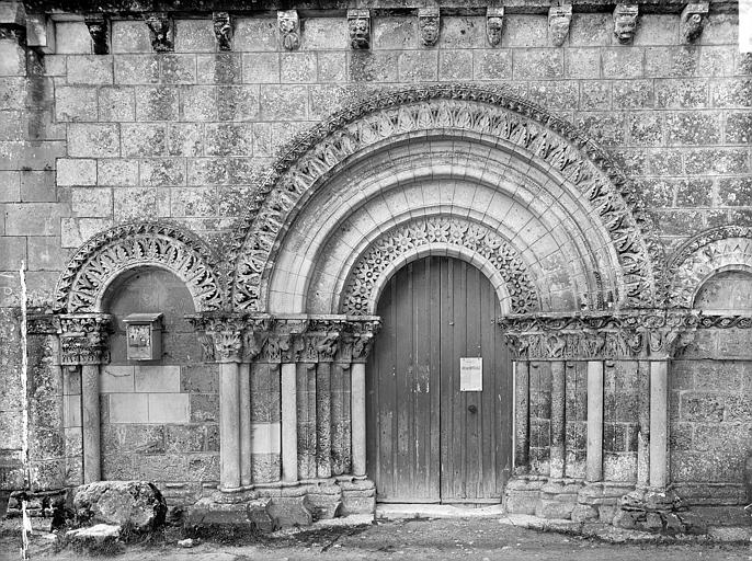Portail avec chapiteaux finement sculptés. Nef voûtée en pierre. Abside hémisphérique voûtée. Pas de coupole sous le clocher, mais une voûte en berceau.