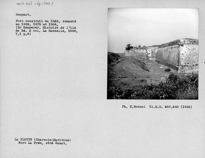 Elément crucial de la fortification au 17e siècle sur l'île de Ré. Il empêchait l'entrée à l'île et le passage du pertuis Breton. Daté de 1625 et bâti par l'architecte d'Argencourt, c'est également le plus ancien fort construit en Charente-Maritime. Le fort a été construit avec les vestiges de l'abbaye romane des Châteliers. En 1628, quelques modifications lui sont apportées : ajout des bastions et des redans au-devant de ce qui va devenir l'enceinte de sûreté ou le donjon. Le chevalier de Clerville réalise un chemin couvert avec des places d'armes rentrantes. Blondel réalise un nouveau projet tout en conservant les éléments anciens, rajoutant une défense plus basse (contre-gardes, demi-lunes, nouveau chemin couvert, front de mer). Pour empêcher la mer d'entrer dans le fort et d'envaser le port, une enceinte de sûreté est réalisée, avec un redan en plein centre. Sur ce glacis va être construit un bâtiment de garnison. Les modifications suivantes seront réalisées par Vauban qui demande à Ferry de raser tous les dehors du fort, le front de mer étant conservé. Une batterie est ajoutée à l'extrémité, permettant de battre et de croiser les feux avec la citadelle de Saint-Martin et des citadelles côtières, pour interdire complètement le pertuis Breton aux ennemis. En 1878-1880, réalisation de traverses-abris et d'une nouvelle poudrière. Le bâtiment est désaffecté vers 1900.