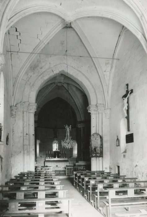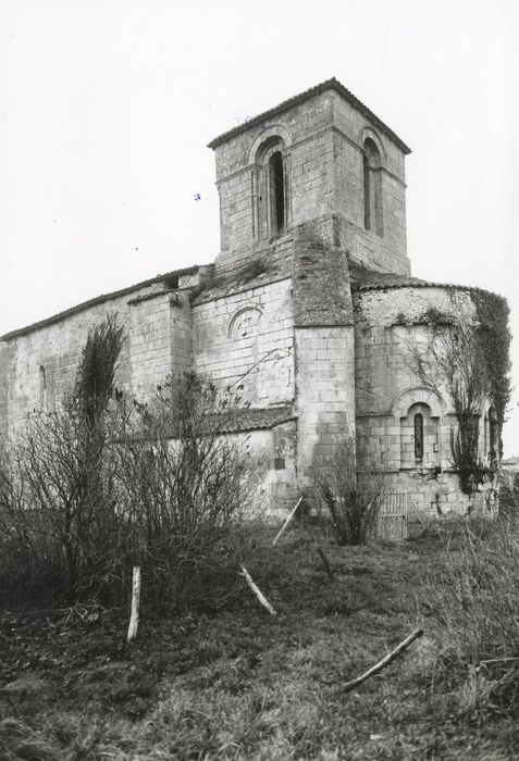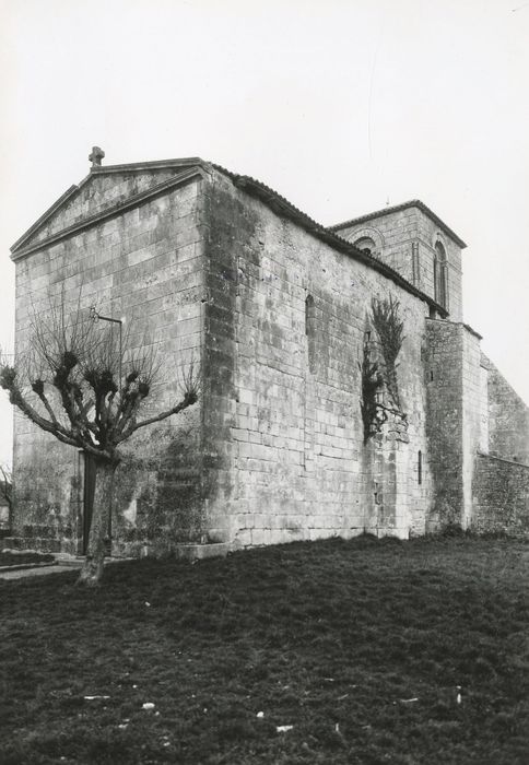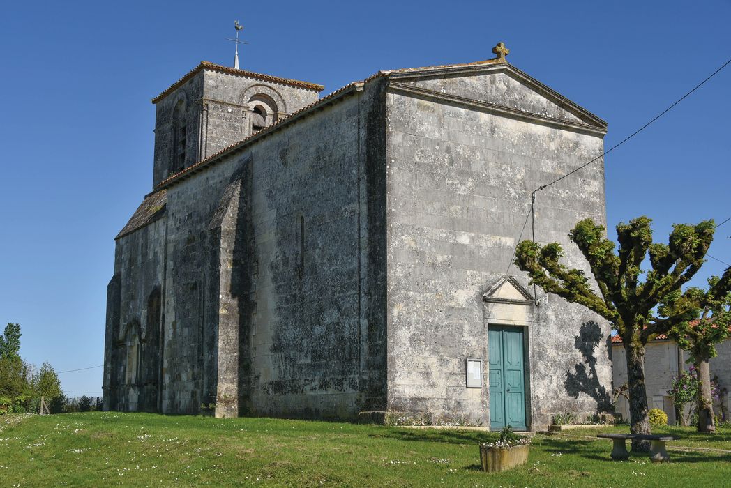 Eglise de la fin du 12e siècle. Les deux travées de la nef furent reconstruites au 14e siècle. A cette même époque, des mouvements dans le clocher incitèrent à construire deux énormes contreforts aux angles nord-est et sud-est du clocher. La façade date de 1880. La première travée de la nef est couverte d'une voûte d'arêtes. La seconde travée est voûtée sur croisée d'ogives portée sur de hauts piliers à chapiteaux corinthiens. Culots à personnages. L'abside est en cul de four et percée de trois fenêtres romanes. Au nord, petite piscine dans une niche en tiers-point.