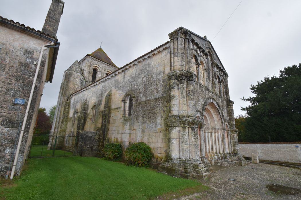 L'édifice du 12e siècle conserve son porche, son clocher et son abside voûtée. Seule la nef a perdu ses dispositions primitives de couverture. Autrefois voûtée en berceau, elle est actuellement couverte d'un plafond. Les doubles colonnes du portail ont été brisées aux 16e et 17e siècles. Le clocher, placé au-dessus du choeur, a son étage supérieur surmonté d'une coupole octogonale sur trompillons.