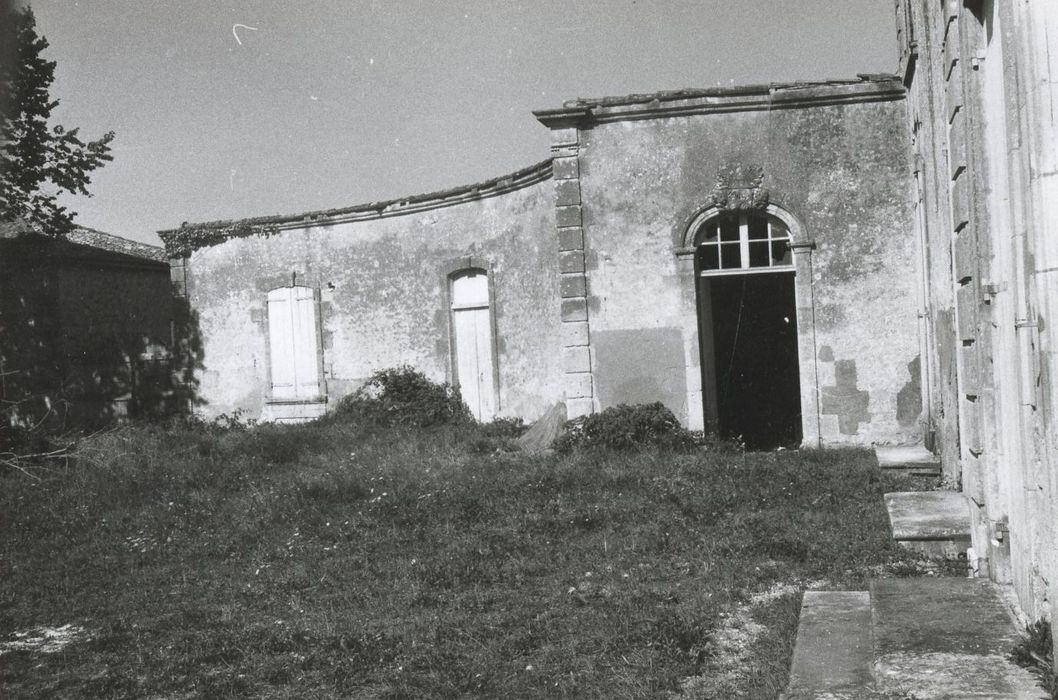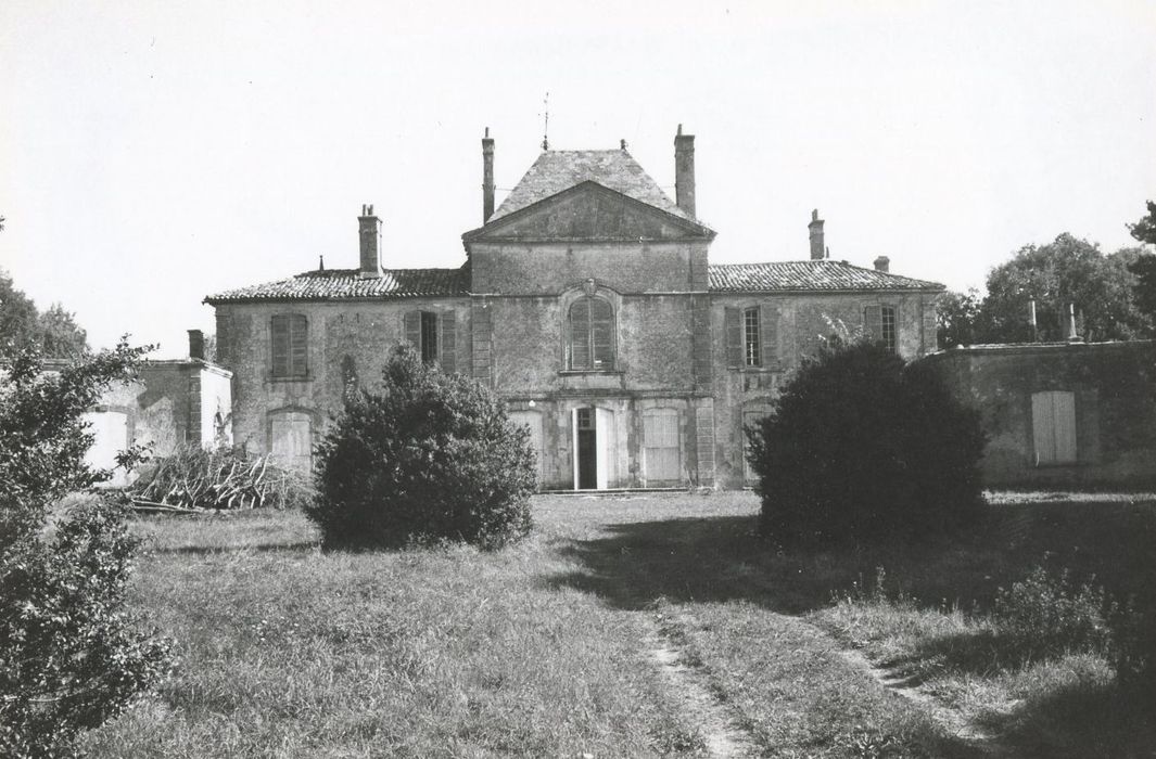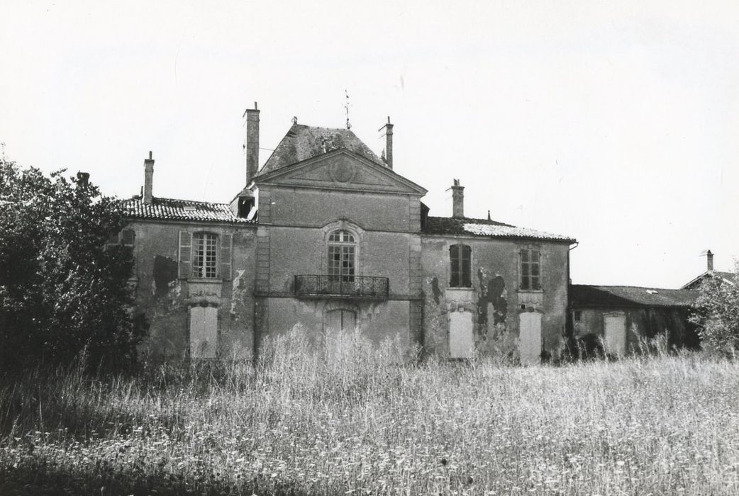 Château construit en 1768 par Pierre Augustin Perrodeau, conseiller secrétaire du Roi, sur l'emplacement d'un ancien logis qu'il agrandit tout en conservant les fondations. Le château est saccagé en 1793, après l'arrestation de la famille Perrodeau. Pour la construction de l'édifice actuel, les matériaux du bâtiment primitif ont été réutilisés. Autrefois, au bout d'une longue allée, deux piliers du 18e siècle ornés de lions, marquaient l'entrée d'une grande avant-cour que précède un saut-de-loup maçonné. Le château prend place au fond de cette cour, encadré par des servitudes. Il se compose d'un pavillon central au fronton triangulaire et de deux ailes un peu moins élevées, s'incurvant en fer à cheval pour former deux ailes en retour, prolongées également par des ailes droites. Le sous-sol comprend une série de caveaux irrégulièrement placés (13e siècle). C'est de là que repartaient en direction de Saint-Jean-d'Angély, après leur jonction, les souterrains venant des églises et autres lieux des environs. Située dans l'une des ailes du bâtiment central, la chapelle est en demi-cercle et présente un décor 18e toujours en place.