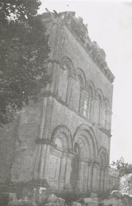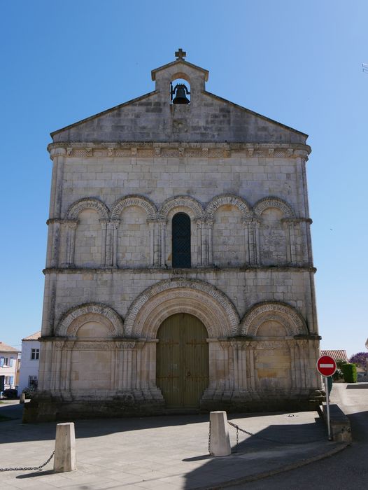 Fondé en 1103, ce prieuré avec vicariat perpétuel était à la nomination du prieur de l'abbaye Saint-Eutrope de Saintes. Le pignon de la façade occidentale a été restauré en 1858 puis après la Seconde guerre mondiale. L'édifice est en forme de croix latine et se compose d'une nef, d'un transept et d'un choeur à chevet plat. Sur la croisée du transept se trouvait autrefois le clocher carré à la base. La nef était couverte de voûtes en plein cintre, en briques creuses et plâtre sur doubleaux en pierre. Le mur oriental est percé d'une grande fenêtre à meneaux du 15e siècle. Le choeur est couvert d'une voûte sur croisée d'ogives retombant sur des chapiteaux. Sous la dernière travée de choeur se trouve une crypte couverte d'une voûte en arc brisé. L'accès se fait par la façade nord, par un emmarchement extérieur de plan circulaire. L'extrémité sud de la crypte est éclairée par une petite fenêtre. Dans l'angle de la nef et du croisillon nord, un escalier à vis donnait accès à l'ancien clocher. La façade occidentale s'ouvre, en son centre, par un portail surmonté d'une archivolte à quatre voussures sculptées retombant sur des colonnettes. Ce portail est flanqué de deux arcatures aveugles, surmontées d'archivoltes sculptées retombant également sur des colonnettes. Une frise sculptée traverse l'arcature à la hauteur des chapiteaux des colonnettes. Le premier étage est percé d'une fenêtre au centre, flanquée de quatre arcatures aveugles dont les archivoltes sculptées reposent sur des chapiteaux. Le cordon qui couronne la façade est surmonté d'un pignon qui portail un clocher à arcade.