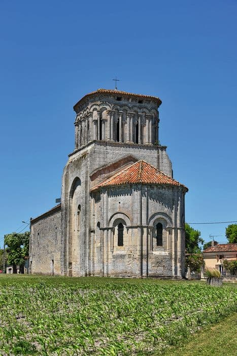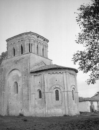 L'église se compose d'une nef et d'un choeur terminé par une abside circulaire. Les parties occidentales de l'édifice ont conservé leurs dispositions du 12e siècle. Une coupole en pierre sur pendentifs couvre la première travée de choeur. Au-dessus s'élève un clocher dont le plan carré est légèrement arrondi aux angles à l'étage du beffroi, et décoré d'une suite d'arcades placées en avant de la masse principale. L'abside voûtée en cul de four comporte cinq arcatures retombant sur des colonnes surmontées de chapiteaux sculptés.