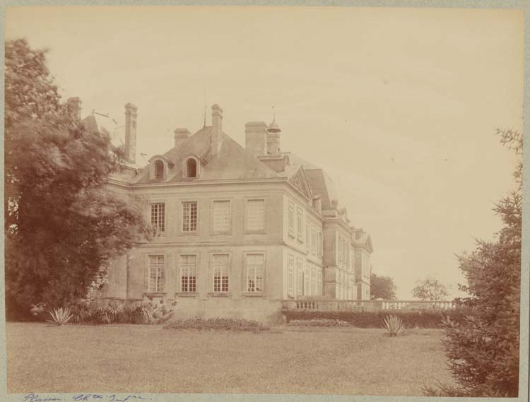 Château cité depuis le 13e siècle. La demeure du 18e a succédé à deux autres édifices. La reconstruction du château médiéval aurait eu lieu vers 1555. Après 1633, le duc d'Epernon fit agrandir les fossés, allonger les ailes latérales, flanquer les angles de pavillons bastionnés. Cet important édifice est démoli à partir de 1769 par Charles de Malvin, marquis de Montazet, baron de Quinsac, conservant simplement les bases et les fossés dans la construction du nouvel édifice. Selon la tradition, les plans seraient dus à Victor Louis, mais il semble plus vraisemblable de les attribuer à l'architecte Christophe Macaire sur les directives du marquis. Vers 1859, la famille de Dampierre fit démolir les restes de l'ancienne basse-cour médiévale, niveler l'esplanade et bâtir une aile de dépendances parallèle à celle des écuries du 18e. En 1940, Rommel y installe son état-major. ££Du château du 16e siècle subsiste, au sud, la "tour du pèlerin", châtelet d'entrée rectangulaire à pilastres flamboyants sur culots figuratifs, et la grange. Le logis du 18e siècle est un long bâtiment composé d'un haut pavillon central prolongé par deux ailes terminées, côté cour, par deux avant-corps latéraux coiffés de frontons triangulaires sculptés d'allégories guerrières. Côté jardin, elles se terminent par deux pavillons reprenant la forme des pavillons bastionnés du duc d'Epernon. L'intérieur comporte un vestibule orné de trophées en stuc, un grand escalier suspendu à rampe ouvragée, une chapelle à lambris de hauteur en stuc, un salon à l'italienne avec galerie orné de faux marbres et d'une peinture murale illustrant la vie de Henri IV. Côté cour, la demeure est précédée par une vaste basse-cour, encadrée par deux ailes de dépendances flanquées de deux pavillons. L'aile sud, du 19e siècle, imite les grandes lignes architecturales de celle du 18e. Un immense parc entouré de murs flanqués par quatre tours rondes et percés de trois grandes portes, agrément le château. £