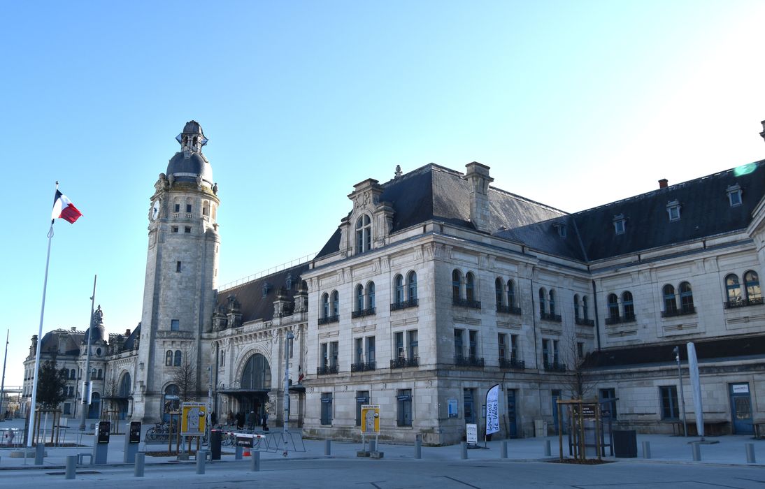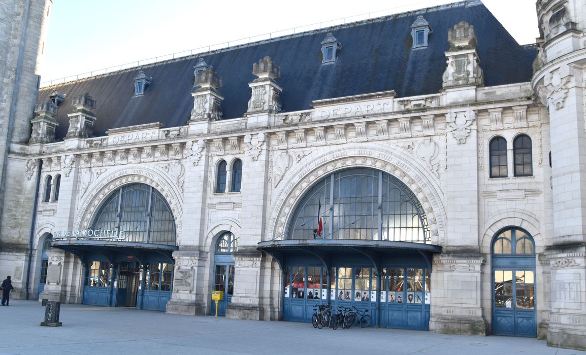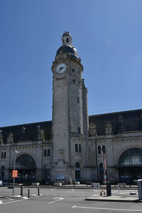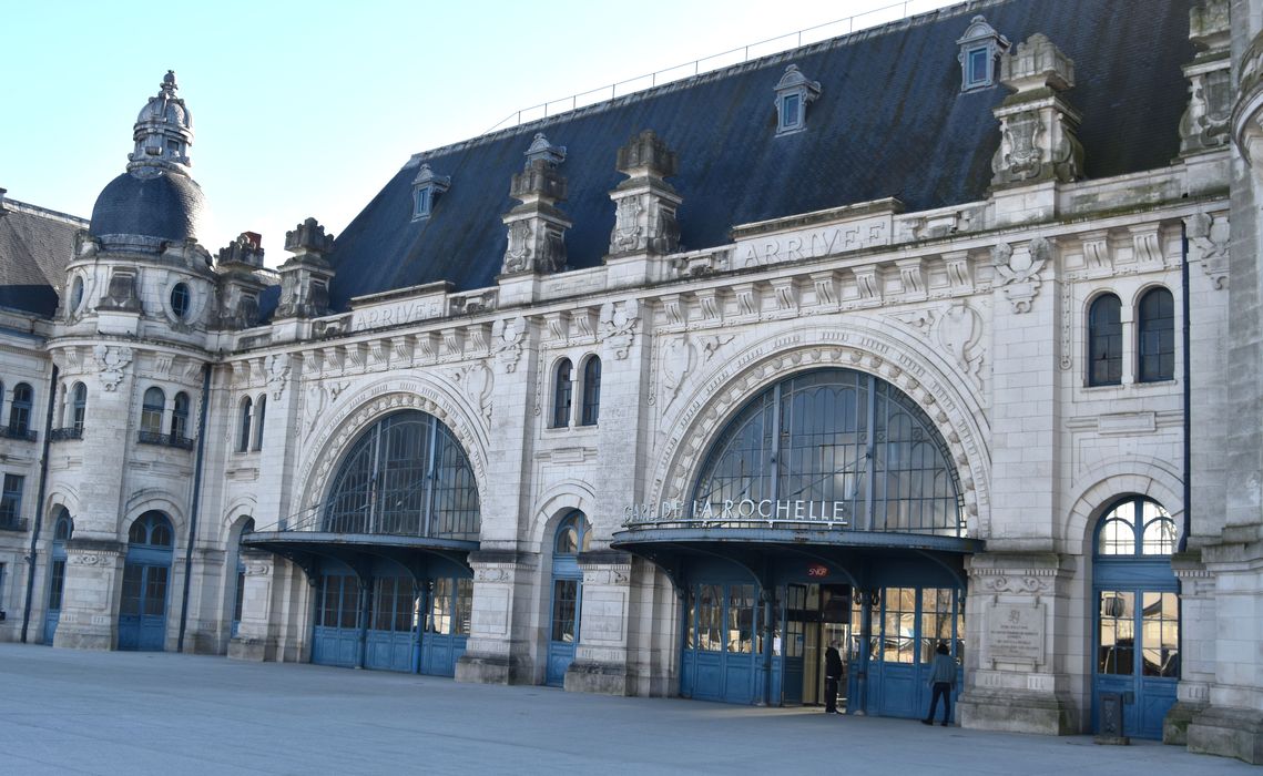 Les plans de la gare sont établis en 1909 par l'architecte Pierre-Joseph Esquié, prix de Rome en 1882. Sa construction débute en 1910 mais, interrompue par la guerre, n'est achevée qu'en 1922. La charpente métallique du bâtiment principal, du hall couvrant les voies et des marquises en façade est réalisée par l'entreprise Ménard et Gourdon de Nantes. Le décor sculpté de la gare s'inspire de la faune maritime. Le hall des voyageurs est orné de mosaïques exécutées par A. Biret sur des cartons du peintre G. Godefroy (actuellement occultées).