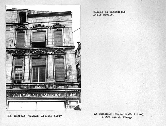 Nouvelle-Aquitaine ; Charente-Maritime (17) ; La Rochelle ; 1 rue Pas-du-Minage ; impasse Tout-y-Fault