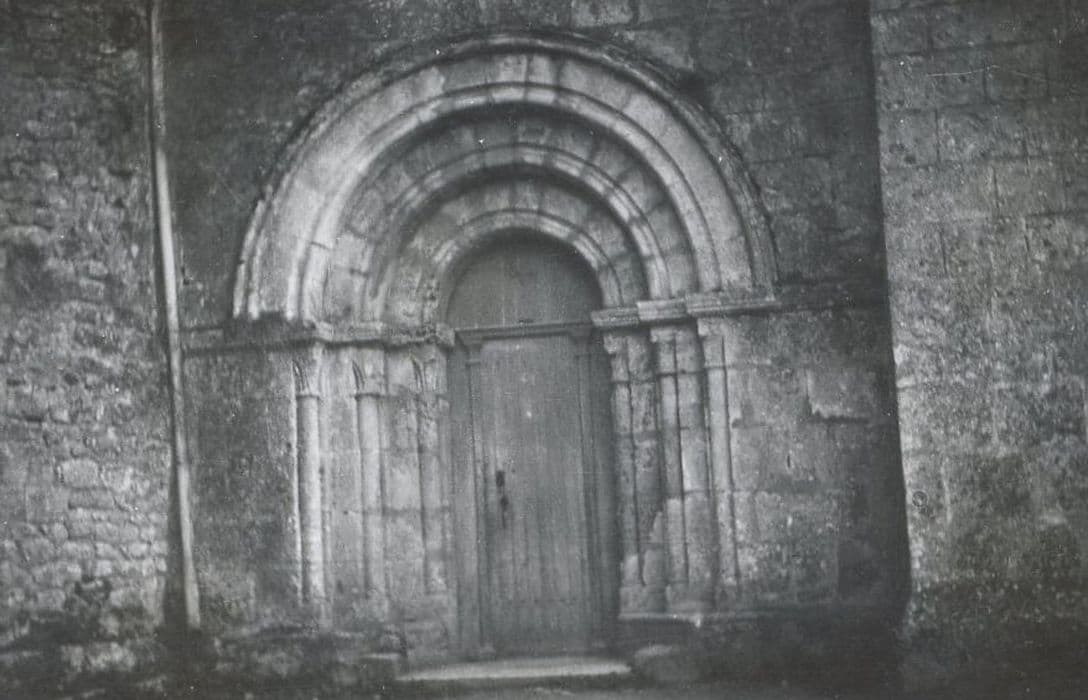 La construction primitive, datant probablement du 11e siècle, comprenait une nef unique, sans transept, terminée par une abside demi-circulaire. Le transept sud fut ajouté au 12e siècle. Le portail est à trois voussures, orné de chapiteaux à feuillage archaïque. En 1562, l'église fut ruinée par les Protestants. De la nef primitive ne subsista que le mur sud. Une brèche fut pratiquée au ras du sol, à l'angle sud-est, débouchant dans la voûte de la crypte, cette voûte ayant été entièrement démolie et les peintures de l'arcade seigneuriale grattées. La peinture de saint Michel, probablement trop haute, échappa à la destruction. Les créneaux furent renversés soit à cette période, soit lorsque Richelieu ordonna le démantèlement de toutes les forteresses. Lors des restaurations du 17e siècle, les murs sud et nord de l'église haute furent rabaissés ; les murs du chevet et de la façade furent taillés en pignon de façon à asseoir directement sur la voûte, sans charpente, une toiture à double pente. Deux créneaux furent conservés, au-dessus desquels fut élevée une petite arcade (1669) pour loger la cloche. Sur la crypte fut installée une voûte en berceau directement posée sur les côtés nord et sud du déambulatoire. Une porte Renaissance ouvrit l'église et la voûte fut remplacée par un simple tillis en planches.