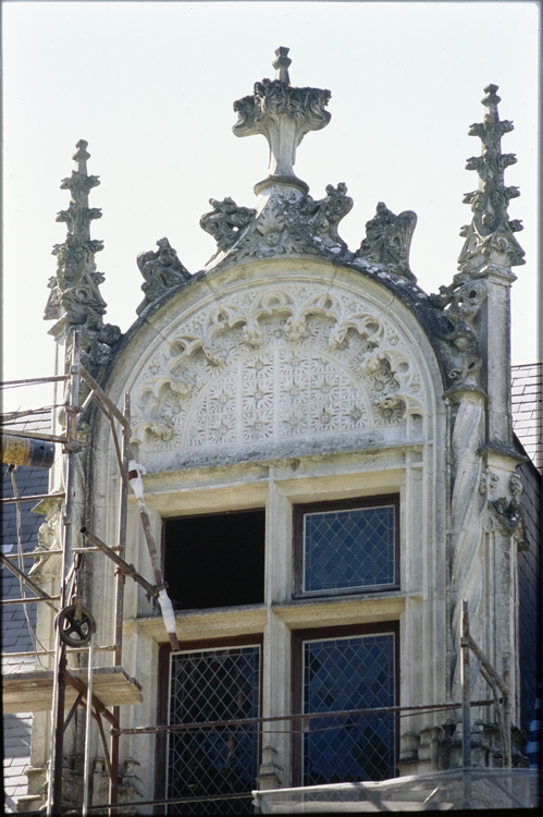 Château érigé à la fin du 15e siècle. De cette époque, il conserve la forme de la couverture et des rampants à crochets des pignons ainsi qu'une lucarne flamboyante monumentale. Vers 1530, l'édifice est embelli (escalier à l'italienne, à mur noyau, orné de colonnes cannelées et de bustes antiquisants). Les 17e et 18e siècles le dotèrent de grandes cheminées de pierre. Au nord-ouest, un pigeonnier circulaire daté de 1740 renferme 1500 boulins.