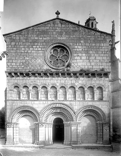 L'église comprend deux parties, l'une du 11e siècle et l'autre du 15e. La première partie comprend les restes d'une ancienne chapelle au sud, encastrée dans le bas-côté, et sous laquelle existe une crypte. Cette partie s'ouvre par un portail à trois arcatures dont deux appuyées sur deux pilastres et neuf colonnettes. Une frise semblant représenter les sept péchés capitaux court sur la façade. La deuxième partie est constituée par l'abside et appartient au style flamboyant. Elle s'ouvre par une porte avec colonnes en faisceaux prismatiques, crosses végétales, niche pour statuette, et couronnée par une coquille. Le clocher se termine en coupole et présente une galerie.