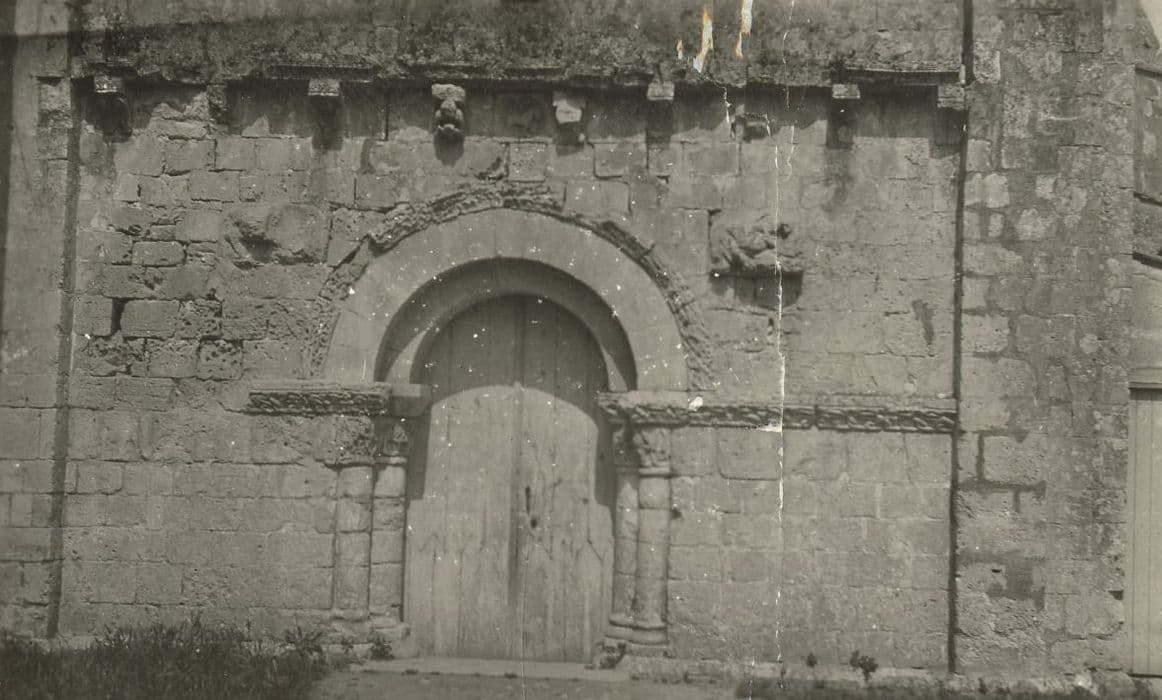 La façade s'ouvre par une porte qui se compose de deux voussures soutenues, de chaque côté, par de courtes colonnes dont les chapiteaux sont ornés d'entrelacs, ainsi que des abaques qui se prolongent de chaque côté sur le mur. Une archivolte ornée d'entrelacs entoure les voussures. Au-dessus de la porte, une tablette est portée par des modillons. Une pierre incluse dans la façade, à droite de la porte, représente un personnage assis avec, devant lui, un autre personnage couché sur ses genoux. La façade sud est flanquée d'un clocher. Le chevet est éclairé par un fenestrage gothique.