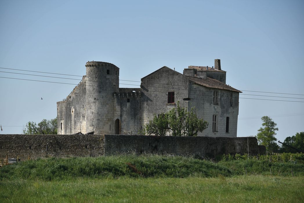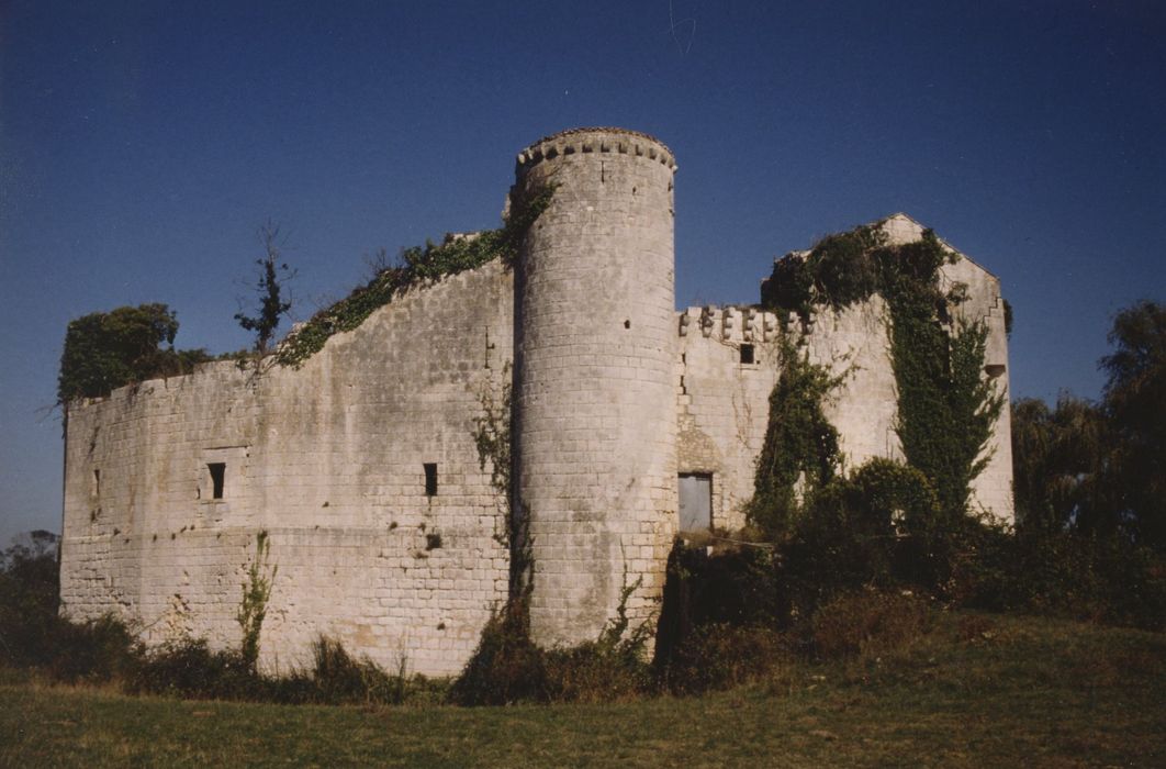 Construction du château entreprise par Guillaume de Lusignan vers 1180. Fortifications terminées au 13e siècle. Transformation du corps de logis aux 14e et 15e siècles. Le manoir a été édifié suivant un plan polygonal. Deux tours se détachent sur les courtines : une tour demi-circulaire établie à côté de la porte d'entrée et une tour établie du côté opposé. L'entrée dans la cour se fait par un pont en pierre remplaçant l'ancien pont-levis. La porte était défendue par une tour avec corbeaux et mâchicoulis dont il ne reste que les encorbellements. A l'intérieur de l'enceinte, des bâtiments ont été élevés et disposés en équerre. Celui de droit remonte au 15e siècle, constituant un logis. Celui du fond est en ruine. Ce corps de logis comprend deux étages. L'entrée s'y fait par une tour circulaire contenant l'escalier à vis. La porte de style gothique flamboyant, encadrée de colonnettes, pinacles et accolades, est surmontée d'un blason tenu par deux lions. Sur la cour intérieure, un escalier sur un arc donnait accès au chemin de ronde.