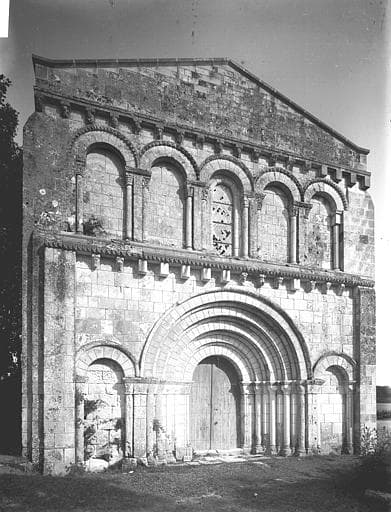 L'église comprend une nef autrefois voûtée en berceau avec arcs doubleaux reposant sur des colonnes cantonnant des pilastres supportant des arcs de décharge ; un sanctuaire et une tour de clocher sur la façade nord. Cette dernière est occupée par une ordonnance de pilastres montant de fond à la tablette d'entablement et de contre-pilastres recevant des arcatures dont les sommiers reposent sur une imposte sculptée à damiers. Le choeur, ajouté au 15e siècle, comporte une grande fenêtre à meneaux et clairevoies moulurés et sculptés. La façade occidentale date du 12e siècle.