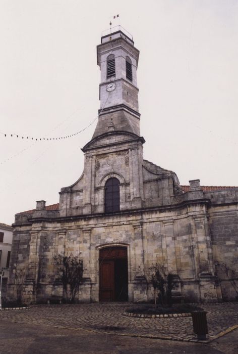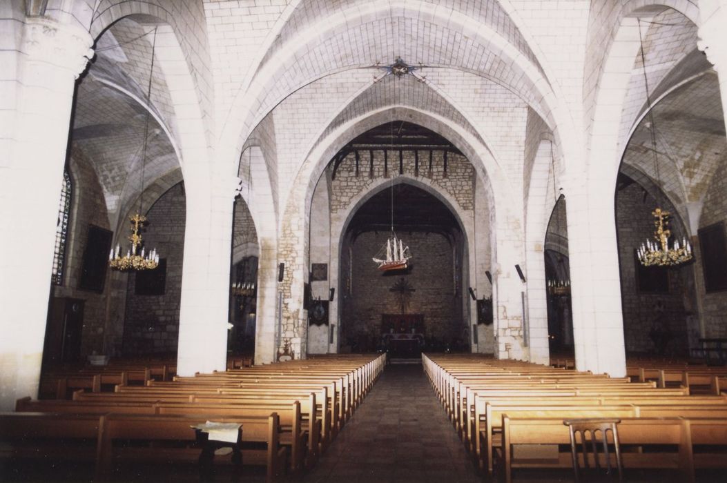 L'église a connu, depuis son origine romane, de nombreuses vicissitudes dues aux guerres de Religion et ne semble être rétablie qu'en 1623. La façade a été reconstruite au 18e siècle dans le style néo-classique et le clocher porte la date de 1776. Cette façade est à deux niveaux décorés de pilastres plats et d'ailerons. Après 1850, elle a été élargie d'un bas-côté. La nef est flanquée de deux bas-côtés. Les voûtes d'arêtes en matériaux légers, sont décorées d'un faux appareillage figurant des croisées d'ogives (1890). La croisée du transept et le choeur sont sous charpente. Les chapelles latérales du choeur sont couvertes d'une voûte en plâtre néo-gothique.