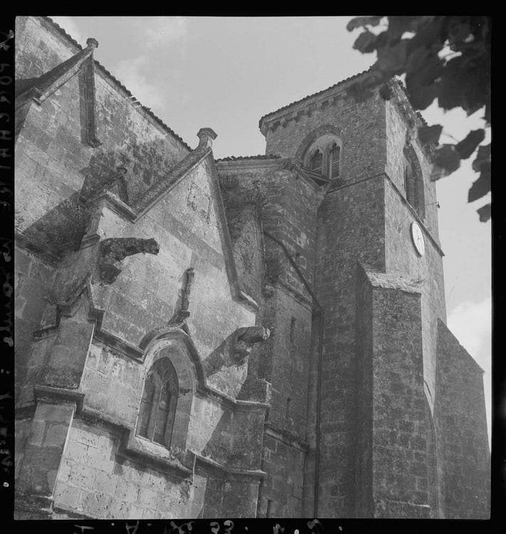 Quelques éléments du 12e siècle subsistent dans la première travée mais le reste de l'édifice date du 15e siècle. La nef est flanquée, du côté sud, d'une petite chapelle abritant les fonts baptismaux et d'un clocher carré. Elle se termine par un chevet plat, percé d'une grande verrière à meneaux et à réseau flamboyant. L'une des chapelles du côté sud supporte le clocher carré, remanié au 15e siècle. La façade occidentale, surmontée de deux étages d'arcatures, date du 12e siècle mais sa porte a été remaniée au 15e. Les seules parties sculptées sont les chapiteaux de la façade et la frise à métopes et modillons du 12e siècle, de la première travée, côté sud.