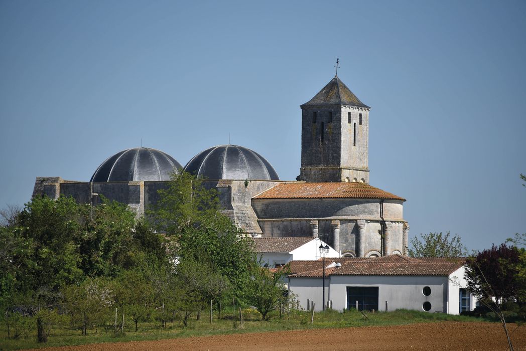 Eglise à une seule nef, autrefois à trois travées voûtées en coupole. Il reste la trace de deux travées et les coupoles ont été refaites en ciment armé vers 1900. Les groupes de colonnes portent des chapiteaux sculptés de facture 12e siècle. Le clocher carré s'élève sur une coupole sphérique à pendentifs. La façade principale est percée d'un portail à quatre archivoltes reposant sur des colonnes à chapiteaux.