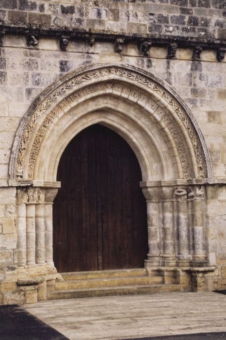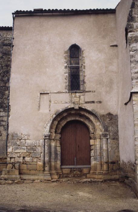 L'édifice, dont la construction s'échelonne du début du 12e siècle au 14e, conserve des éléments de l'époque romane. De la première église subsistent le carré du transept à coupole sur trompes ; les croisillons du transept conservent des éléments sculptés. Le transept s'inserre entre un sanctuaire gothique (14e siècle) qui a sans doute remplacé une abside romane, et une nef du 12e siècle. Des colonnes fasciculées conservent des chapiteaux romans. Le portail ouest, en arc brisé, est orné de palmettes. Les chapiteaux s'ornent de personnages associés à des chimères affrontées.