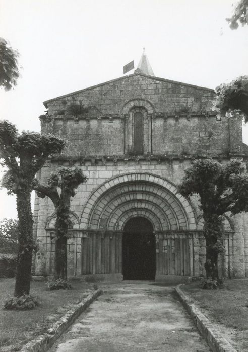 Du 12e au 17e siècle, le droit de patronnage est exercé par un chanoine du chapître de Saintes. L'édifice qui s'élevait au début du 12e siècle, peut-être un édifice antérieur, comportait des bras de transept dont un seul est conservé au sud. Il présentait sans doute une abside circulaire et un clocher différent. A la base du clocher actuel, sur trois côtés, des faisceaux de colonnes attestent du clocher roman. Selon un type répandu en Saintonge, il devait s'agir d'un clocher à un étage ajouré de baies, sur plan carré, et orné de colonnes aux angles. Les modifications les plus importantes remontent au 15e siècle, après la guerre de Cent ans. Le bras nord du transept, détruit, n'a pas été remonté. Le bras sud a été transformé en chapelle. Le choeur témoigne d'une conception différente de l'église et de la liturgie à la fin du Moyen Age. Il a été bâti en deux travées éclairées par une grande baie percée dans le mur est d'un chevet plat. A l'intérieur, le carré du clocher conserve des chapiteaux romans historiés (motifs végétaux, bestiaire roman, thèmes sacrés...).