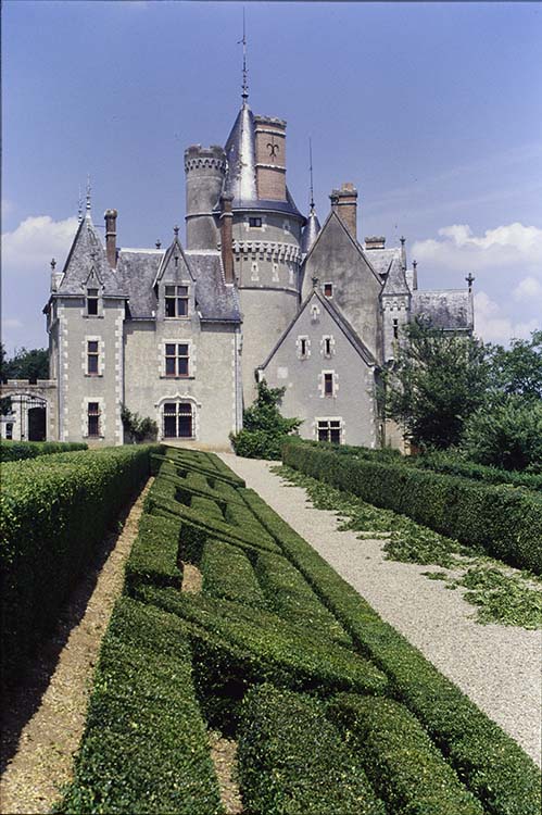 Château édifié entre 1470 et 1490. Des travaux sont effectués après 1867. Le logis du 15e siècle était défendu à l'ouest par trois tours rondes, à l'est par une tour ronde en avancée. Le bâtiment rectangulaire hors-oeuvre abritant la chapelle gothique est aujourd'hui pris dans un décor 19e siècle. Diverses adjonctions (bâtiment reliant le logis à la tour nord-est et aile sud-ouest) s'ajoutent au logis d'origine et empruntent le vocabulaire neo-gothique. L'intérieur de la salle au billard est recomposé à la même période. Présence de vitraux du 16e siècle en remploi et de vitraux créés par Baptiste Petit Girard (1857 et 1858). La chapelle a conservé son décor intact, retraçant l'enfance du Christ, le Jugement dernier, le dict des trois morts et des trois vifs, le Christ en gloire entouré du tétramorphe. Les communs et le jardin datent également du 19e siècle.