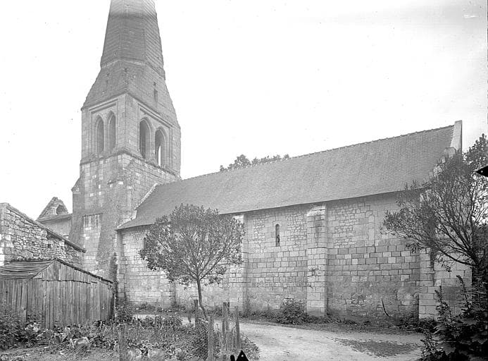 Eglise du 12e siècle, avec partie supérieure du clocher datant du 14e siècle. Les deux travées de l'abside et celle du clocher sont voûtées en pierre. La nef présente une voussure en plâtre sur lattis de chêne. La flèche octogonale du clocher, tout comme l'édifice, est en pierre tendre de Bourré.