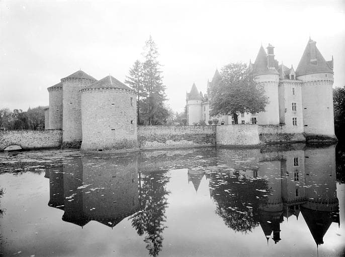 Les tours à mâchicoulis, les larges douves et la porte fortifiée flanquée de tours, précédant la cour d'honneur, constituent un remarquable exemple de l'architecture militaire du 15e siècle. L'édifice se présente comme un vaste rectangle flanqué de fortes tours aux angles et sur les courtines. Une première enceinte est percée d'une porte entre deux tours puissantes. Un pont permanent remplace le pont-levis. A l'intérieur, se trouve une chapelle à arceaux gothiques, dont les détails stylistiques appartiennent à la fin du 15e siècle. La porte, richement sculptée, est surmontée d'un écusson chargé d'un lion rampant et timbré d'une mitre et d'une crosse. Le pavage est en carreaux émaillés, figurant une rose divisée en de nombreux compartiments trilobés, encadrant des fleurs de lys, des crosses, des monogrammes.