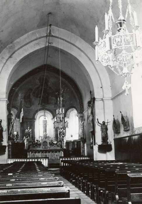 Eglise du 12e siècle, à l'exception des deux chapelles formant transept, ajoutées vers 1850. Voûte de pierre en berceau brisé. Cheour en cul de four. Arc triomphal sur colonnes engagées avec chapiteaux à volutes. Façade occidentale percée d'un portail plein cintre, avec vantail du 17e siècle. A gauche de la porte, table de la Loi en pierre datant de l'affectation au culte protestant au 16e siècle. Au-dessus de la corniche, sur les parties latérales et le chevet, élévation durant les guerres de Religion d'une galerie de défense avec archères. La partie inférieure de la façade a été aménagée à la même époque et est percée de deux archères. Clocher sur la croisée du transept.