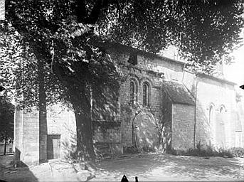 L'église date de la fin du 11e ou du début du 12e siècle et présente un intérêt exceptionnel par des dispositions différentes de celles généralement rencontrées dans la région. Elle est restée en partie intacte. Au 15e siècle, l'ancien sanctuaire a été remplacé par une travée carrée avec voûte d'arêtes et deux bras de transept ont fait disparaître les anciens pignons latéraux. Les murs latéraux ont été surélevés, probablement pour remplacer une couverture en pierres plates portant directement sur les voûtes par une couverture en ardoises sur charpente, opération qui a masqué le bas du clocher. Les traces de l'ancien sommet des murs sont indiquées par des fragments de cordons et de corbelets. La couverture à quatre pans du clocher a été postérieurement accompagnée d'une flèche en aiguille. La nef se compose d'une grande travée précédée d'une plus petite, oblongue, formant vestibule. Au-dessus, petite coupole à pans coupés dont les angles se rachètent par des amortissements dans la maçonnerie. Limitée par quatre angles robustes cantonnés de colonnes, la travée de la nef porte une coupole sur pendentifs. Elle est séparée de la travée du clocher par un petit berceau en renfoncement, reposant lui aussi sur un demi arc latéral. Une troisième coupole occupe la travée du clocher avec octogone et trompillons d'angles. Extérieurement, le clocher présente trois arcatures aveugles ; au-dessus, deux baies.