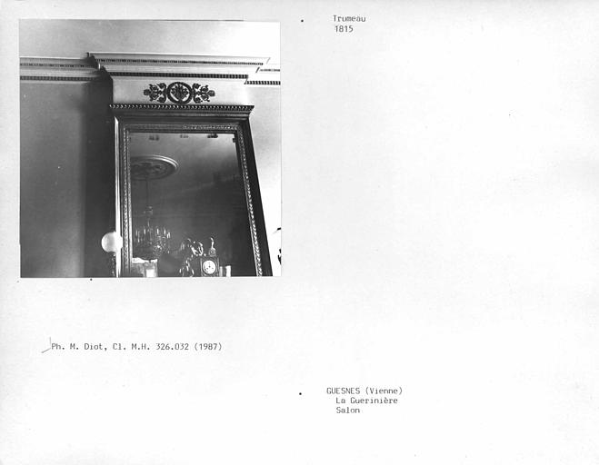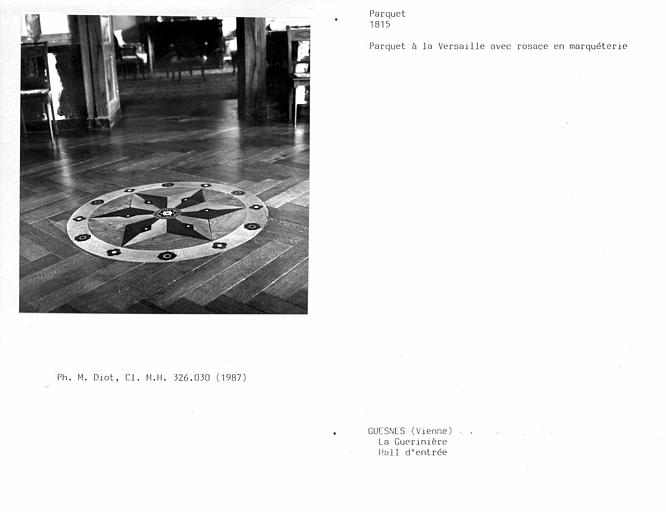 Construite au début du 19e siècle par un maire de Loudun pour servir de rendez-vous de chasse, la Guérinière comprend tout un décor autour de ce thème. Edifiée d'un seul jet, la propriété consiste en un corps de logis avec chaînages et tables en pierres sous les fenêtres. Le pavillon central est marqué d'un ressaut. Deux pavillons latéraux, plus bas de toiture, complètent l'édifice inclu dans une perspective d'allées cavalières. Deux corps de bâtiments de communs sont placés au sud du logis. Le rez-de-chaussée présente un décor Restauration comprenant, en particulier, une série de papier peint. Le décor peint du hall d'entrée imite le marbre avec pilastres. La salle à manger est recouverte d'un papier panoramique représentant "La chasse à Compiègne", peinte par Carle Vernet.
