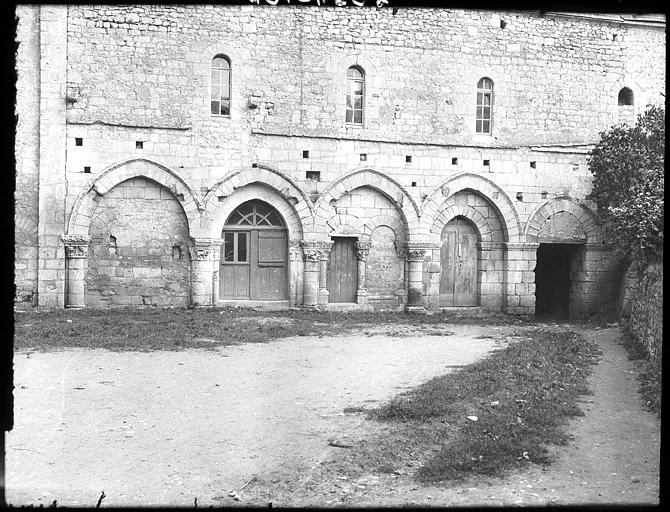 Monastère reconstruit dans la seconde moitié du 12e siècle par des moines venus de Saint-Philibert-de-Tournus. Décadence dès le 16e siècle qui se poursuit pendant le 17e siècle. A partir de 1760, l'église abbatiale est affectée à la paroisse. Après la Révolution, les bâtiments conventuels sont transformés en habitation. Des bâtiments conventuels, ne subsiste plus que l'aile est du cloître. Celle-ci comprend au rez-de-chaussée, l'ancienne salle capitulaire (avec un portail orné de colonnes à chapiteaux historiés) et, à l'étage, l'ancien dortoir éclairé par des baies romanes. Charpente des bâtiments conventuels datée du 15e siècle.