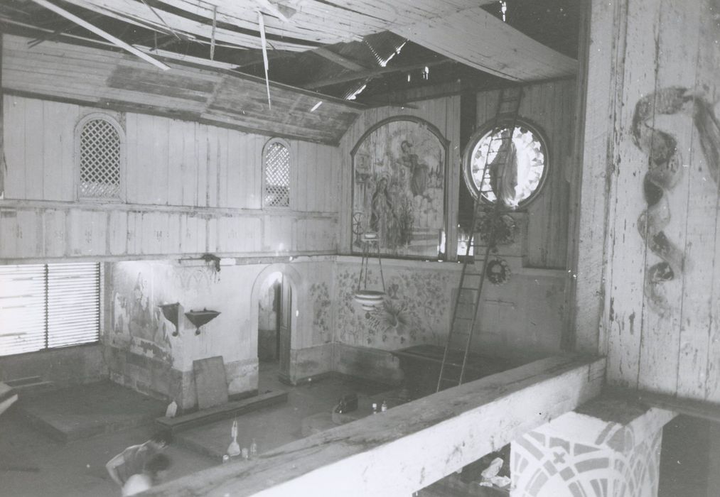 Chapelle de l'ancien pénitencier, construite à la fin du 19e siècle avec une ossature et une charpente en bois. Le plan correspond à celui utilisé en Guyane pendant la seconde moitié du 19e siècle pour toutes les églises : rectangle comprenant une nef, des collatéraux et un choeur charpentés. Le choeur est encadré par deux sacristies. L'entrée principale est protégée par un porche reposant sur des piliers. Lambris intérieurs peints en 1938 par le bagnard Francis Lagrange. Entre 1946 et 1976, après la suppression du bagne, l'église se dégrade par manque d'entretien.
