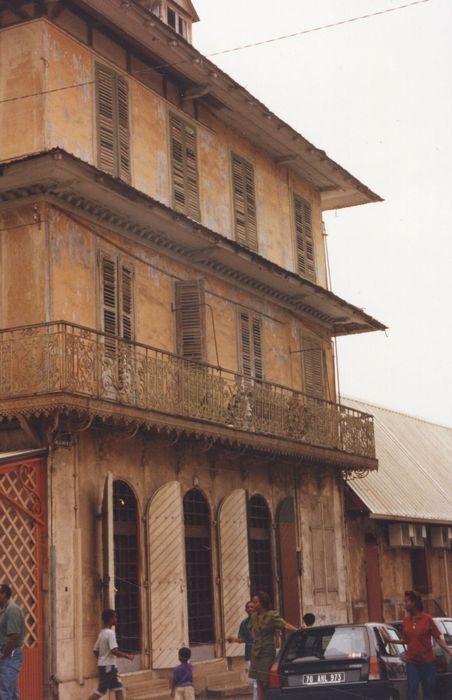 Caractéristique de l'architecture en bois de la fin du 19e siècle dans les départements d'Outre-Mer. Maison sans doute construite après l'incendie de 1888. C'est dans cette maison que vécut le député Jean Galmot de 1919 à 1924. Après 1930, la maison est transformée en hôtel.