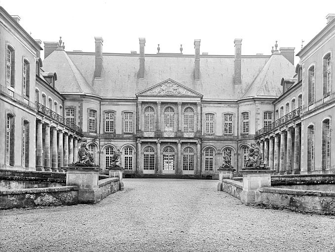 Les façades et toitures du château, des deux pavillons d'entrée et des communs du 16e siècle ; les douves ; les groupes sculptés ; le grand escalier avec sa rampe en fer forgé à la jonction du corps principal et l'aile Est et les pièces suivantes avec leur décor : pièce située au rez-de-chaussée de la tour d'angle Sud-Est, petit salon doré au premier étage et la pièce contiguë, petit salon au rez-de-chaussée de la tour d'angle Sud-Ouest (cad. C 329, 331) : classement par arrêté du 27 juin 1983